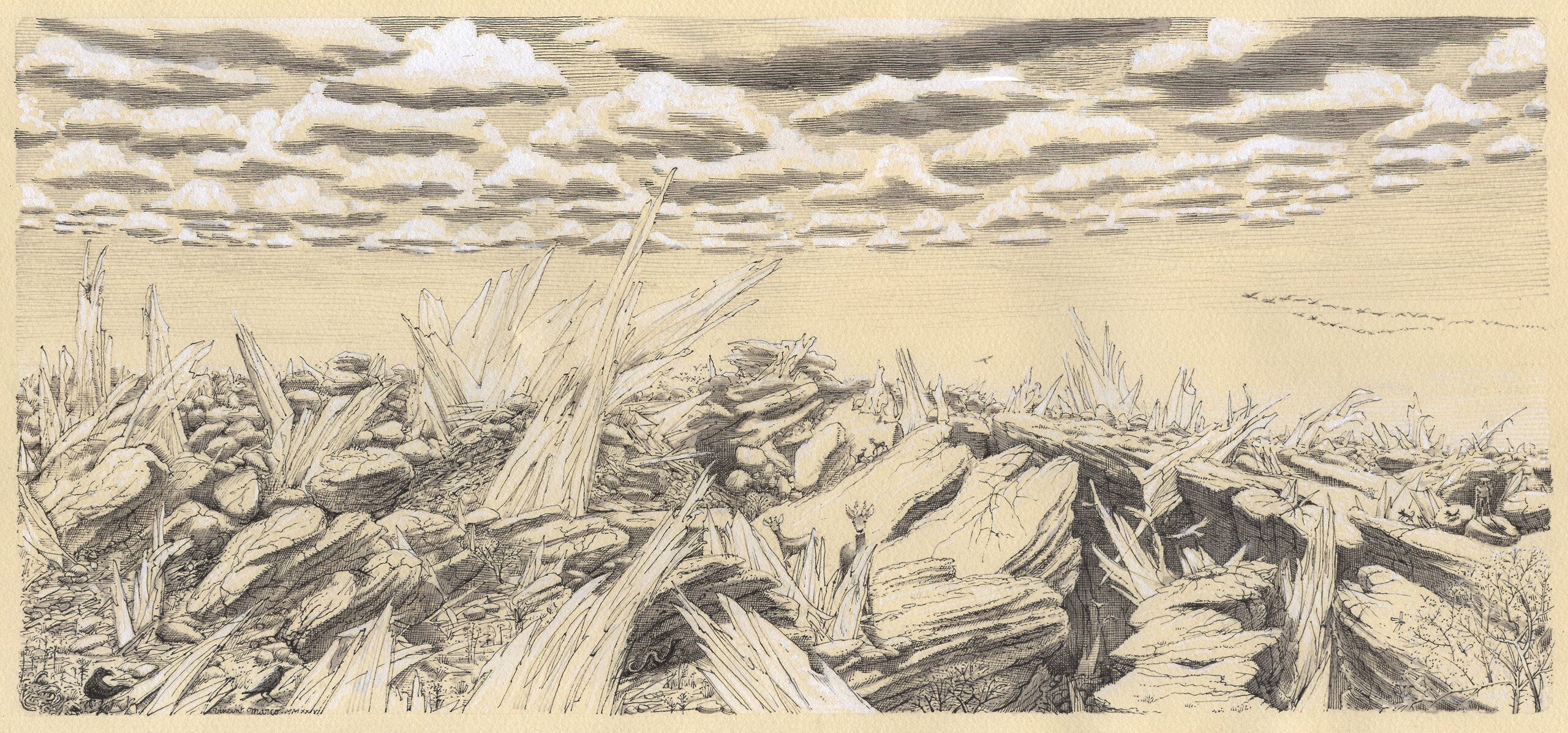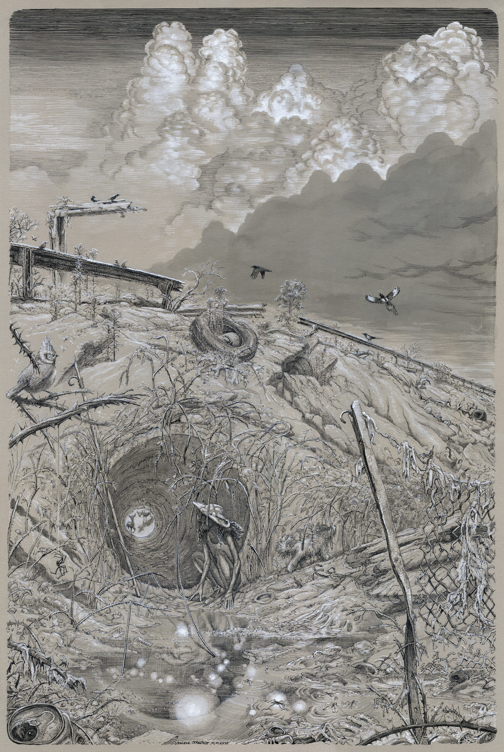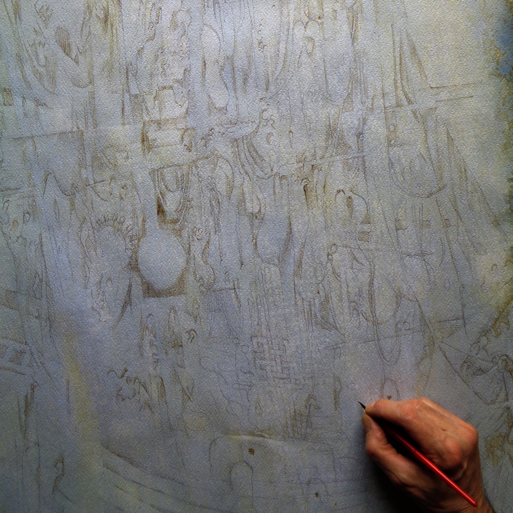 Sepia ink & white gouache on cardboard (dyed with inks) 65x50 (2021)